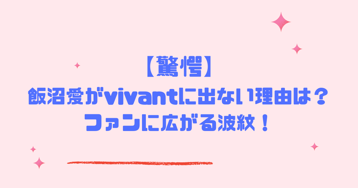 - 【驚愕】飯沼愛がvivantに出ない理由は?ファンに広がる波紋!