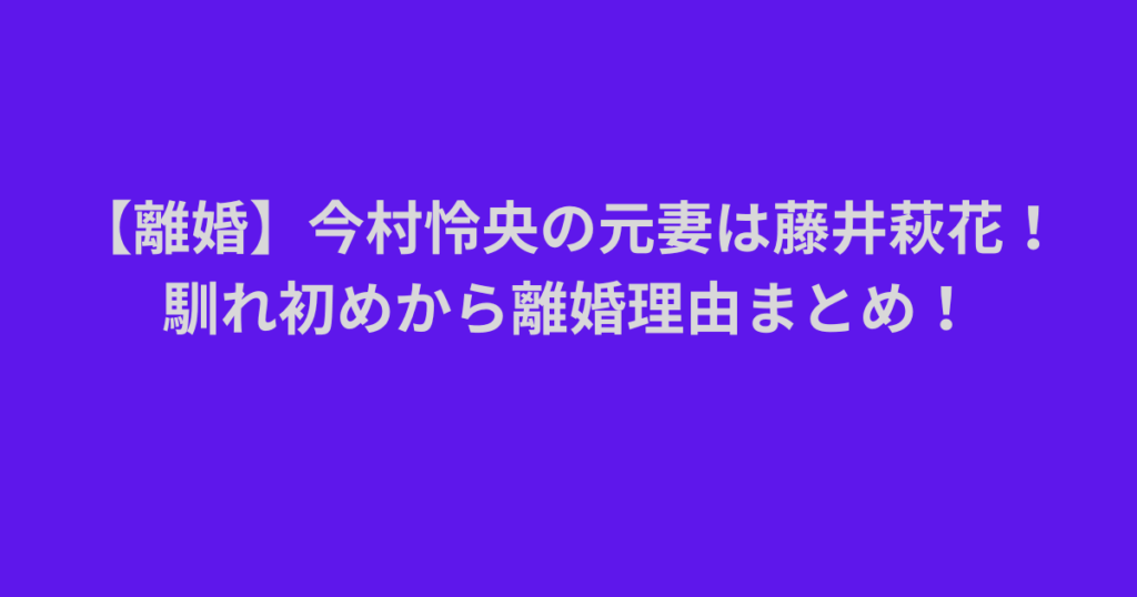 エンタメ・芸能【離婚】今村怜央の元妻は藤井萩花!馴れ初めから離婚理由まとめ!